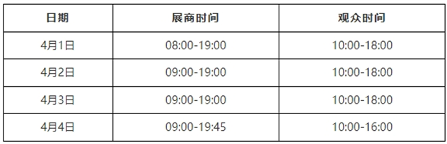 標攤布展時間:3月31日  08:00-19:45