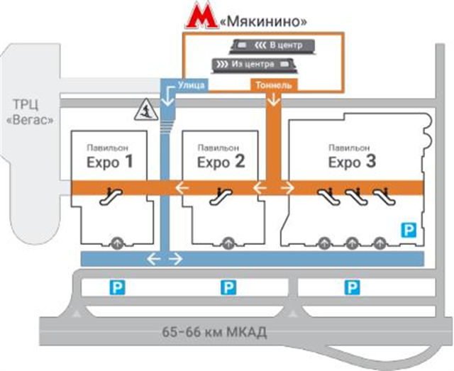 乘坐地鐵:Arbatsko-Pokrovskaya 到Myakinino 站下,出口正對展館(Expo 1 and Expo 2)
