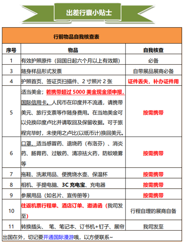 5、若自行攜帶樣品,請(qǐng)務(wù)必用行李箱裝運(yùn)或折疊小推車(chē),方便托運(yùn)、過(guò)關(guān), 以及機(jī)場(chǎng)、展館的進(jìn)出,并攜帶形式發(fā)票。